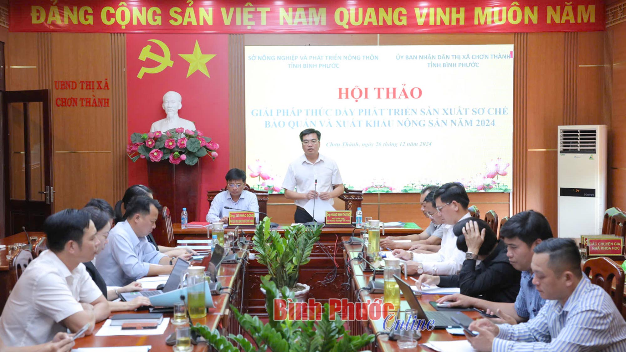BPO - Chiều 26-12, Sở Nông nghiệp và Phát triển nông thôn tỉnh Bình Phước phối hợp với UBND thị xã Chơn Thành tổ chức hội thảo thúc đẩy phát triển sản...