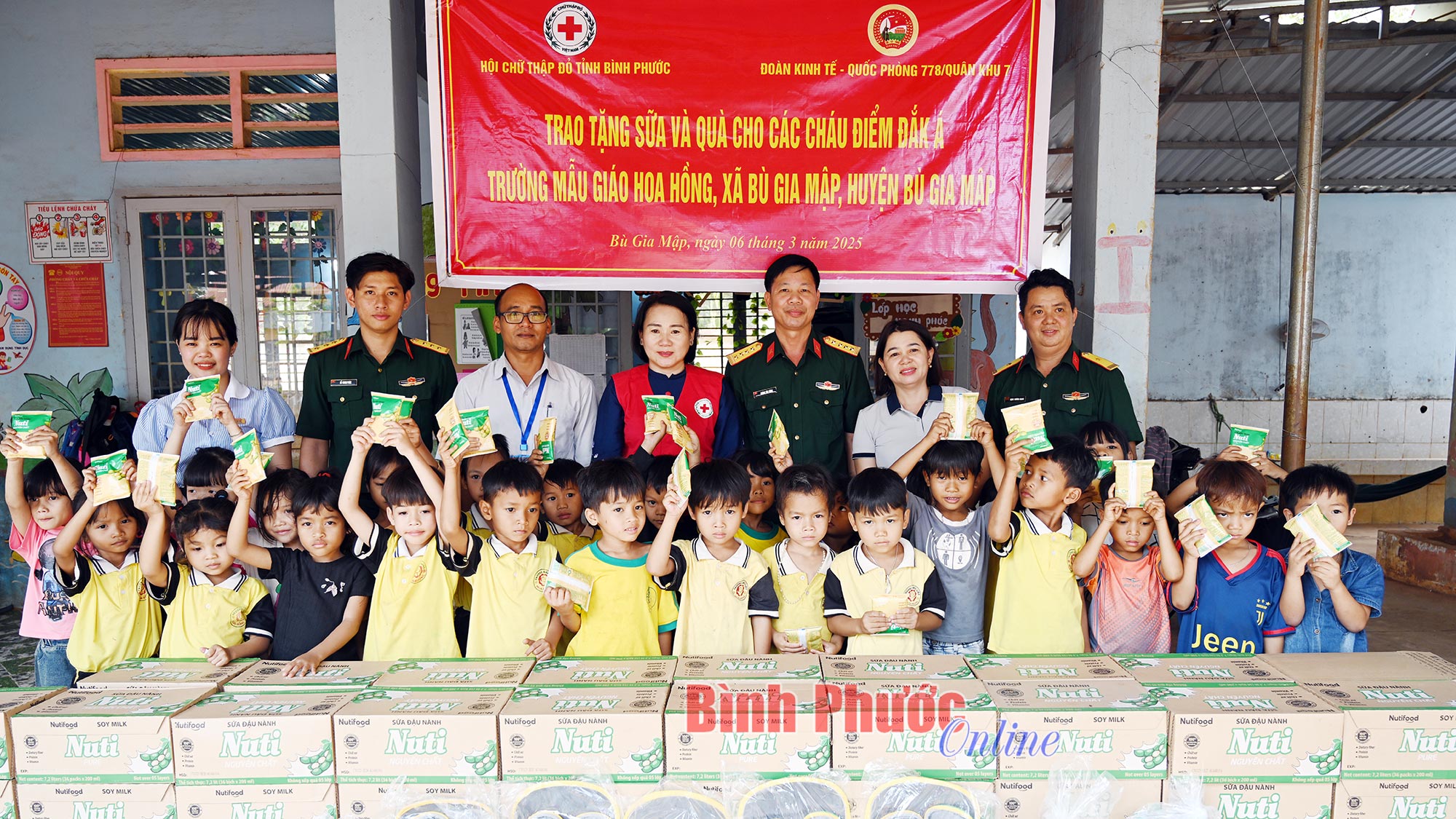 BPO - Chiều 6-3, tại điểm Trường mẫu giáo Hoa Hồng, thôn Bù Rên, xã Bù Gia Mập, huyện Bù Gia Mập, Hội Chữ thập đỏ tỉnh cùng Đoàn Kinh tế - Quốc phòng...