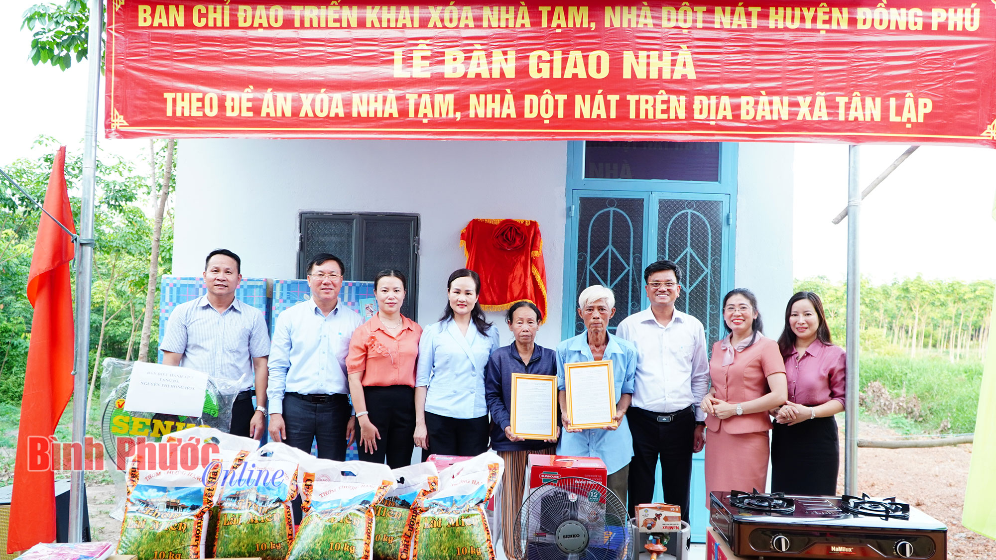 BPO - Chiều 16-4, tại ấp 8, xã Tân Lập, Ban chỉ đạo triển khai xóa nhà tạm, nhà dột nát huyện Đồng Phú đã tổ chức lễ bàn giao nhà cho 2 gia đình có ho...