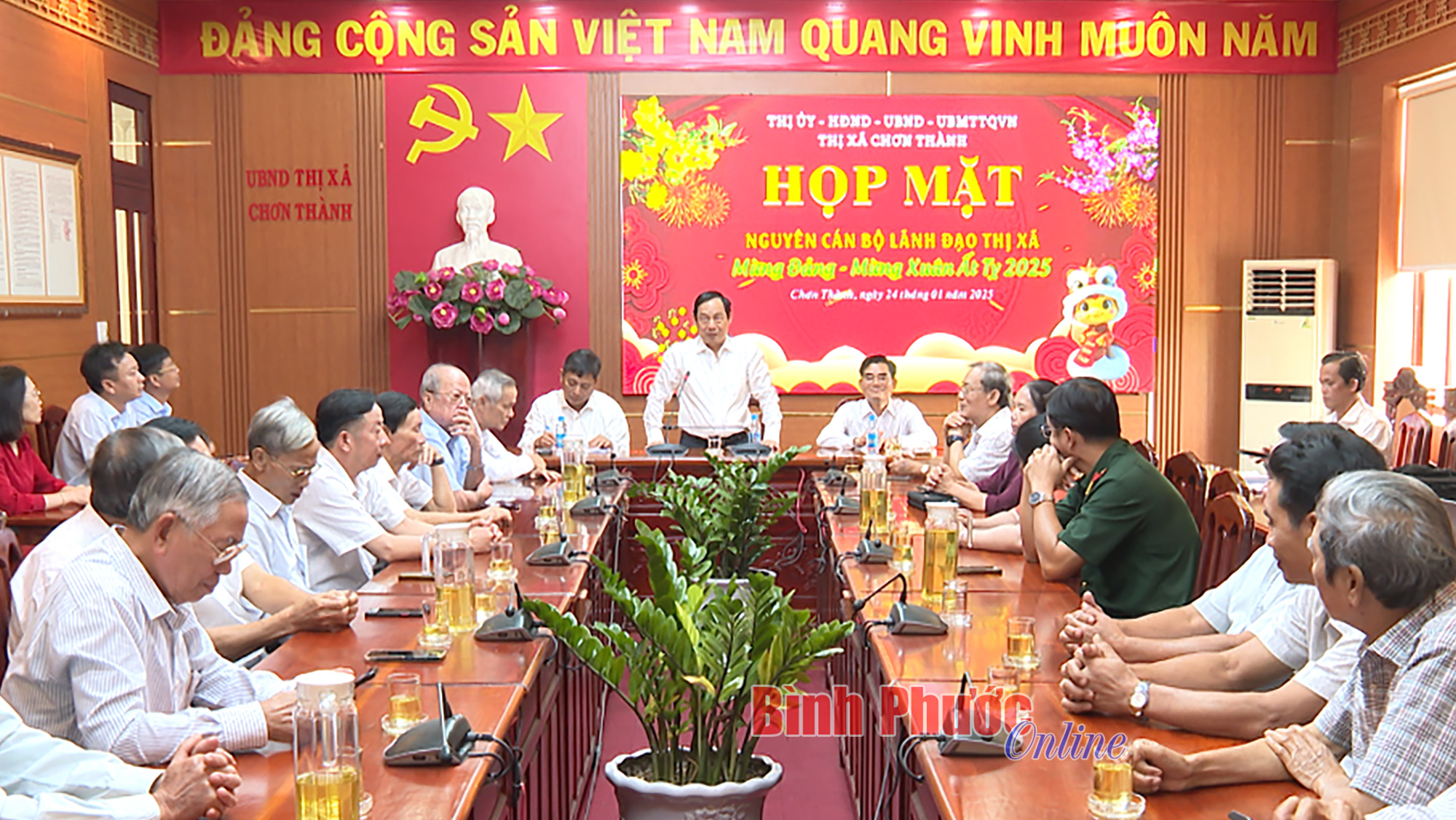 BPO - Ngày 25-1, Thị ủy, HĐND, UBND, UBMTTQ Việt Nam thị xã Chơn Thành đã tổ chức buổi họp mặt nguyên cán bộ lãnh đạo thị xã qua các thời kỳ mừng Đảng...